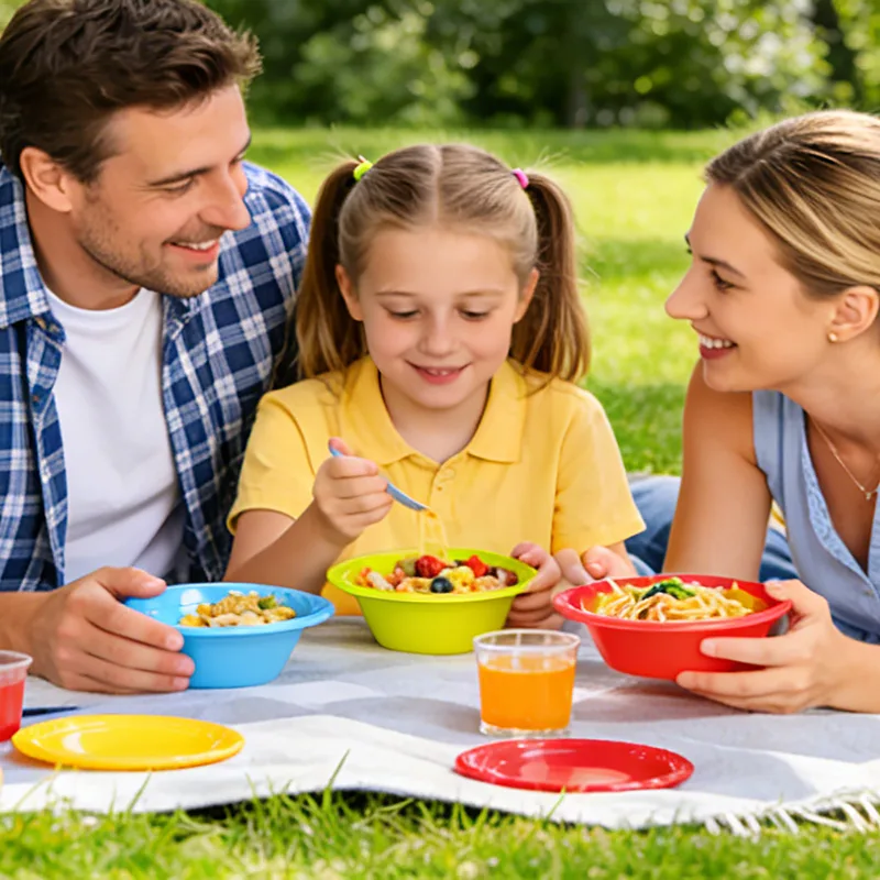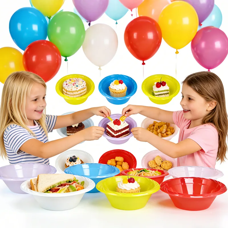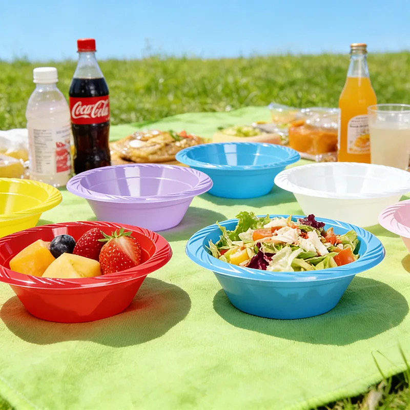 Mangkuk Plastik Parti Pakai 12oz diperbuat daripada plastik gred makanan yang selamat dan tidak berbau, memastikan pengalaman yang selamat dan meyakinkan apabila menggunakannya. Ia boleh memuatkan kedua-dua buah-buahan sejuk dan makanan ringan yang hangat, sesuai untuk pelbagai jenis makanan. Pilihan warna adalah pelbagai, meliputi merah, biru, ungu, putih, kuning, merah jambu, dan banyak skema warna lain. Apabila diletakkan pada selimut berkelah, ia menyerupai palet warna dan mempunyai kesan penapis foto terbina dalam. Penampilannya bergaya dan berfungsi.