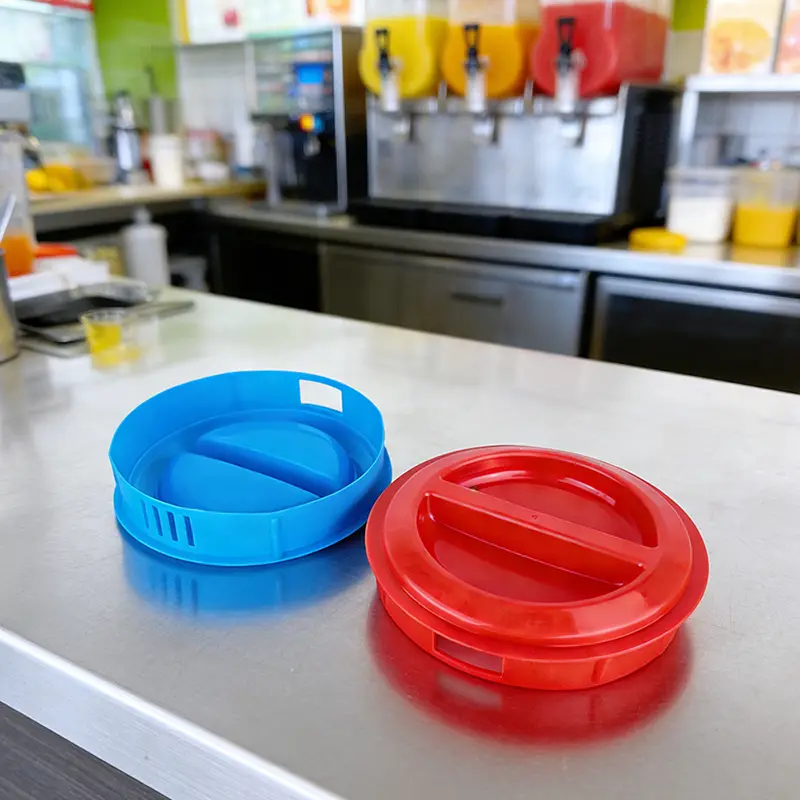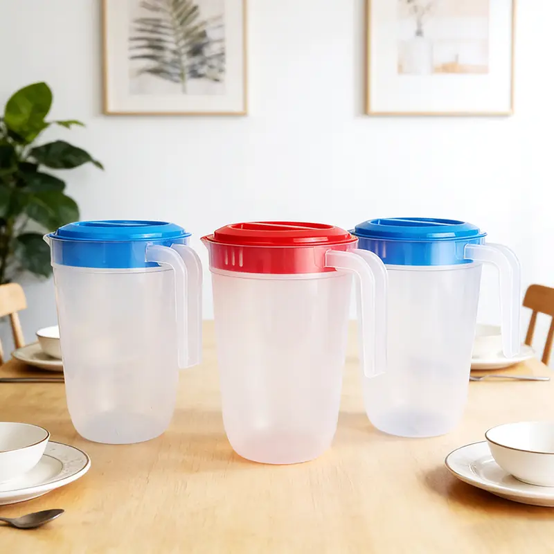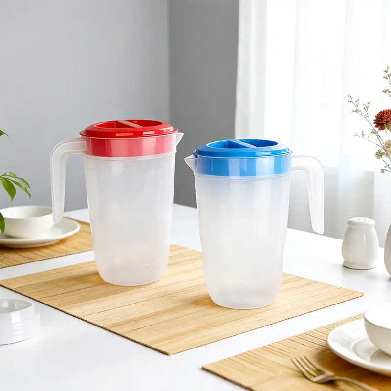 Pitcher Plastik Komersial 2L PP Ningbo Powerr untuk Kedai Minuman Pitcher Plastik separa lutsinar putih susu diperbuat daripada bahan PP gred sentuhan makanan. Tekstur matte lembut dan tidak kasar, membolehkan anda melihat dengan jelas isipadu air yang tinggal tanpa ia terlalu sejuk dan keras. Ia juga tidak mempunyai rupa yang sejuk dan keras seperti model telus sepenuhnya. Tudung bulat dan licin dalam warna merah dan biru menambah percikan warna terang kepada kesederhanaan. Ia boleh disepadukan dengan mudah ke dalam pelbagai gaya hiasan rumah seperti gaya Nordic dan gaya desa apabila diletakkan di atas meja makan atau meja dapur.