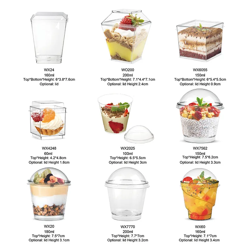 Seperti yang anda tahu, membersihkan bekas pencuci mulut agak menyusahkan. Sebahagian daripadanya terlalu kecil, kadang-kadang terdapat beberapa kawasan yang sukar dibersihkan, dan beberapa pencuci mulut menjadikannya melekit. Membersihkannya memerlukan lebih banyak usaha daripada membersihkan pinggan mangkuk. Walau bagaimanapun, Cawan Plastik Pencuci mulut berbentuk Khas kami tidak mempunyai masalah ini. Walaupun sangat kecil, walaupun bentuknya sangat unik, walaupun pencuci mulutnya sangat melekit, anda hanya perlu menggunakannya dan kemudian membuangnya. Sudah tentu, jika anda boleh membersihkannya dan menggunakannya semula, kami pasti akan menyokong anda. Kualitinya boleh digunakan semula!